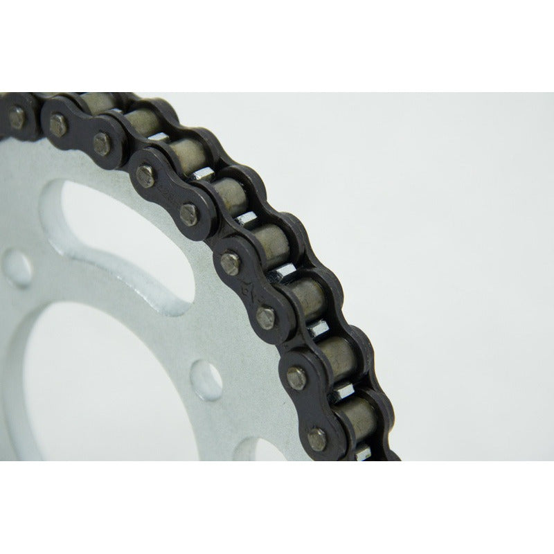 La cadena del kit de arrastre FP está diseñada y fabricada para dar mayor duración. Sus eslabones están fabricados en acero de alta calidad (40Mn), además, están endurecidos por tratamiento térmico. Los pines fueron fabricados en acero de alta dureza con una templabilidad de 30CrMnTi. El Roller es de hacer A10, siendo este resistente al desgaste prematuro.