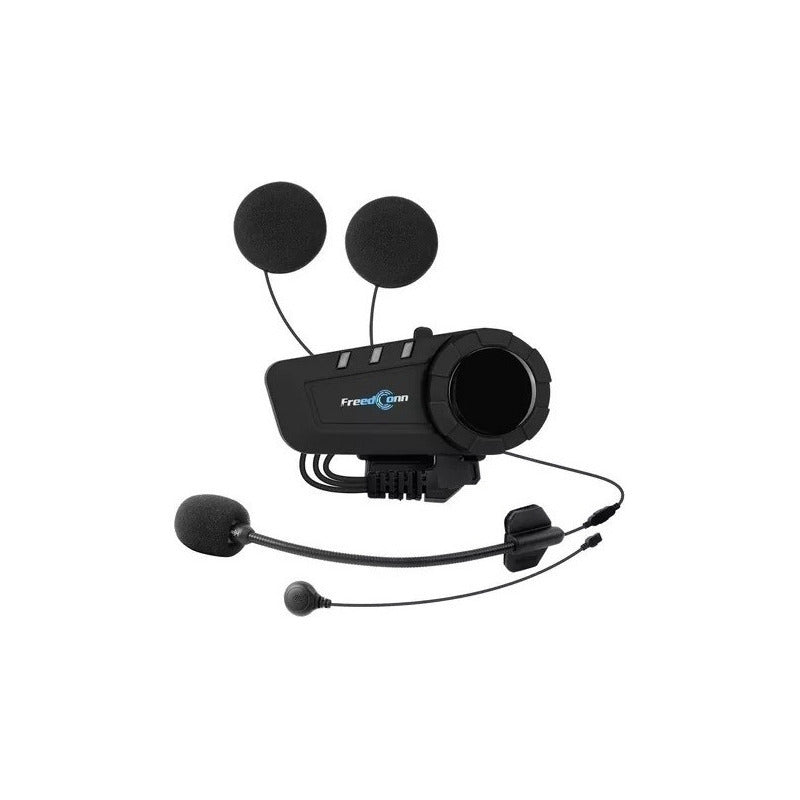 Intercomunicador Ky Pro Freedconn - Mejora en batería y permite compartir música con otro casco. - Conexión de hasta 6 cascos en conferencia. - Conexión al celular para escuchar audio (música, llamadas, indicaciones de mapas, etc.). - Radio FM incluido. - Alcance de hasta 1000 mts a otro dispositivo. - Funciona hasta 180 km/h sin interferencias. - Batería de hasta 10 horas en uso continuo y más de 168 horas en espera. - Batería recargable. - Resistente al agua. - Reproductor MP3 o GPS. - Comunicación entre motos hasta 1000 mt de distancia. - Comandos de voz. - Recepción de llamadas. - Conectividad vía bluetooth 5.0. - Tiempo de conversación del teléfono móvil: 10 horas. - Tiempo de conversación del intercomunicador: 10 horas. - Tiempo de reproducción de música: 10 horas. - Tiempo de carga: 2.5 horas. Incluye: - 1 Intercomunicador. - 1 Par de Audífonos. - 2 Micrófonos (rígido y de cable). - 4 Adhesivos redondos de audífonos. - 2 Adhesivos redondos de micrófono. - 1 Cable de cargador. - 2 Soportes (1 adhesivo, 1 de Gancho). - 1 pinza para soporte de gancho. - 1 Cable para radio.