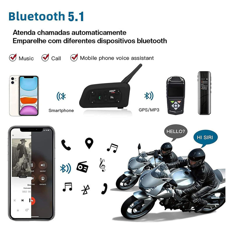 Intercomunicador Casco Moto Ejeas V6 PRO+