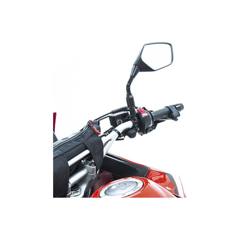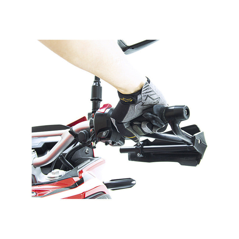 Está construido en caucho de silicona, lo que garantiza su comodidad al apoyar la palma de la mano y su elasticidad, permite que se instale en cualquier moto convencional sobre cualquier tipo de manillar.