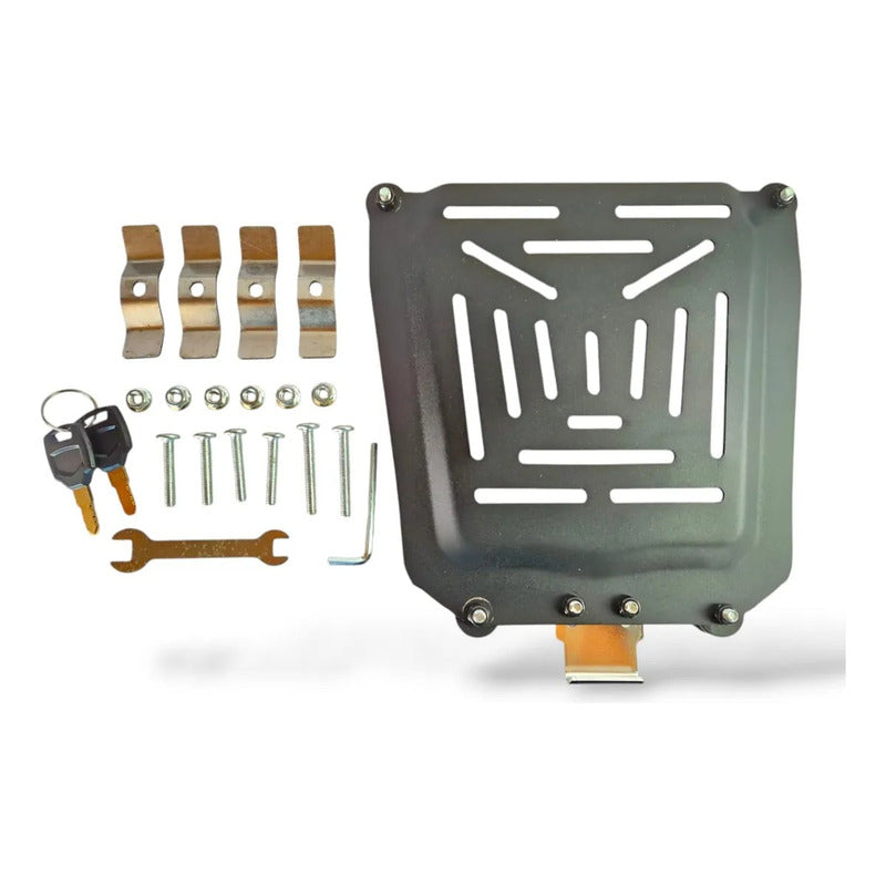 El maletero ADVENTURE de la marca DR1 ALUPRO ACERO llegó a completar la familia. Con un total de 45 litros de capacidad real y útiles, laborado en alta resistencia con en ACERO INOXIDABLE, cuenta con una base metálica que se acopla a cualquier parrilla. Resistente y seguro. Llévate toda la comodidad en tus aventuras con este nuevo maletero DR1 ALUPRO. CARACTERÍSTICAS: peso total con base y accesorios: 6.27 kg Capacidad: 45 Litros Carga Máxima: 8 Kg Incluye base (metálica) Llave de seguridad (para tapa y base) Espaldar acolchado Dimensiones: Ancho 44 cm / Alto 34 cm/ Fondo 36 cm. Estructura: Fabricado en acero inoxidable de alta resistencia.